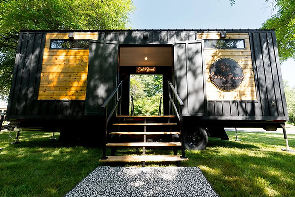 Our stunning 24 ft. mobile tavern includes an indoor hang out space, outdoor furniture, multiple TVs, indoor and outdoor sound system, live edge bar, double tap kegerator, wine fridge, comfortable seating for your guests, double doors and an ambiance that will make you not want to leave!